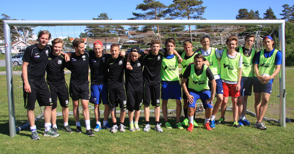 Under lägret i Bohuslän spelades en fotbollsturnering med blandade lag från P 16 till A-lag. Här ses de båda finallagen efter slutsignalen. Foto: Bengt Andersson